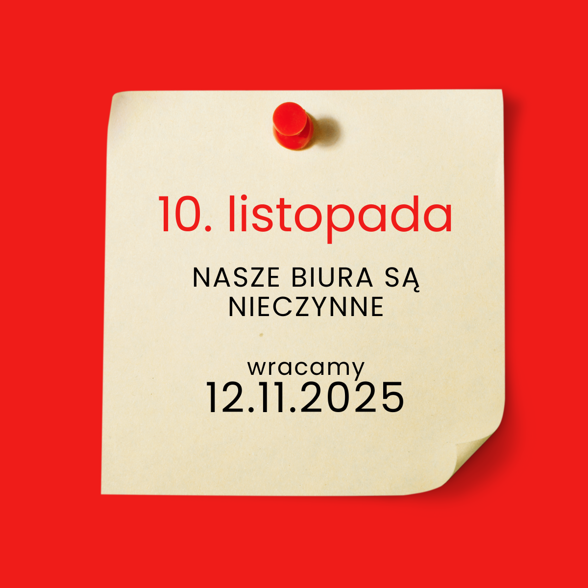 10. listopada nie pracujemy